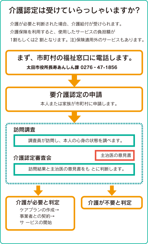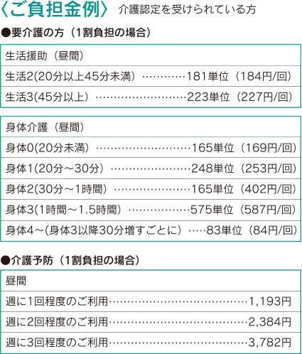 | 介護サービス | 居宅介護サービスを受けながら、生活を継続できます。 訪問介護により身体介護、生活支援サービスを受けられます。 |
