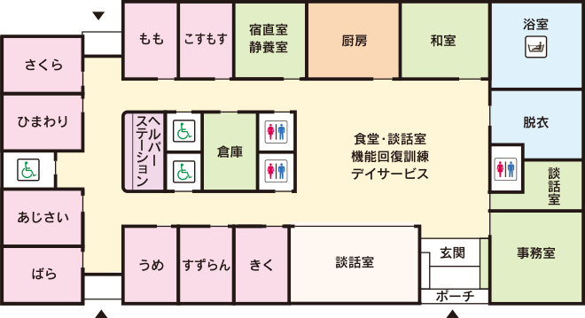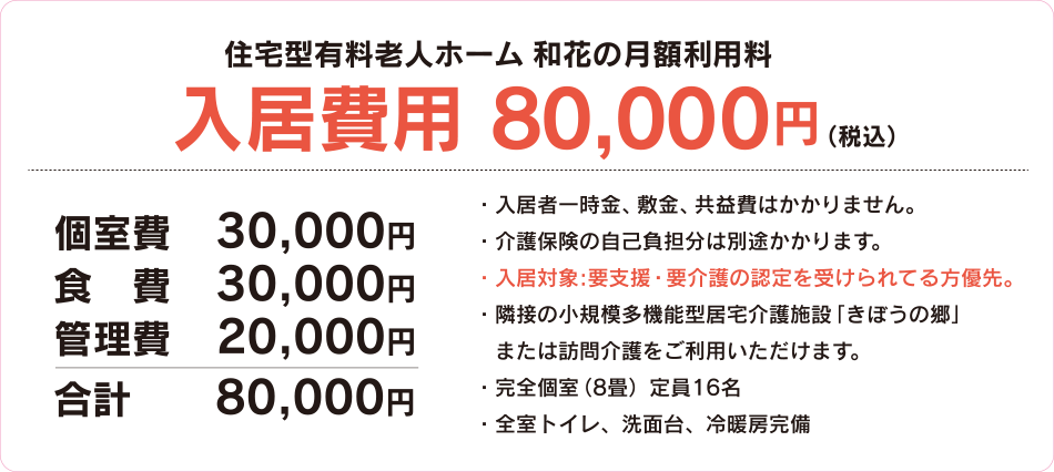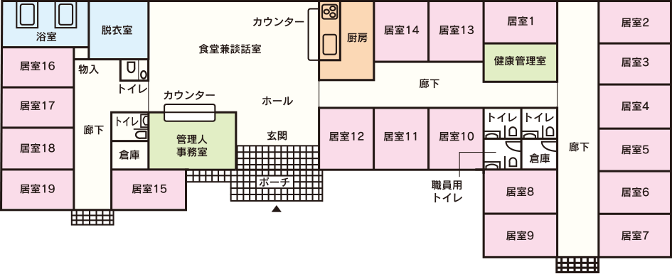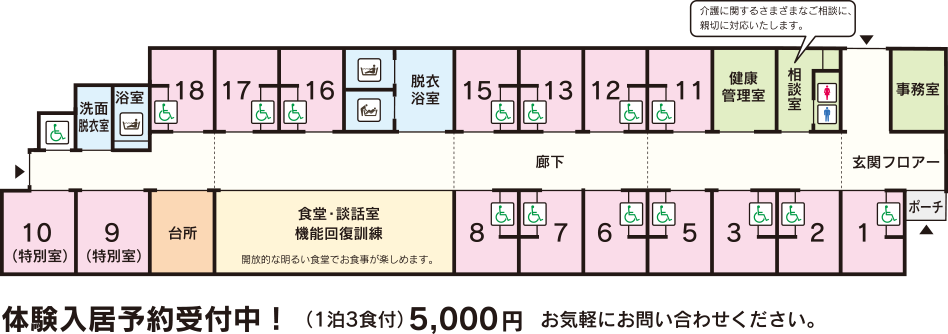 | 居室数 | 全室個室/16部屋(8畳)(14室はトイレ付旬、2室は特別室) |