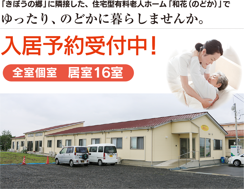 小規模多機能型居宅介護施設「きぼうの郷」と住宅型有料老人ホーム「和花(のどか)」と有料老人ホーム「花畑」